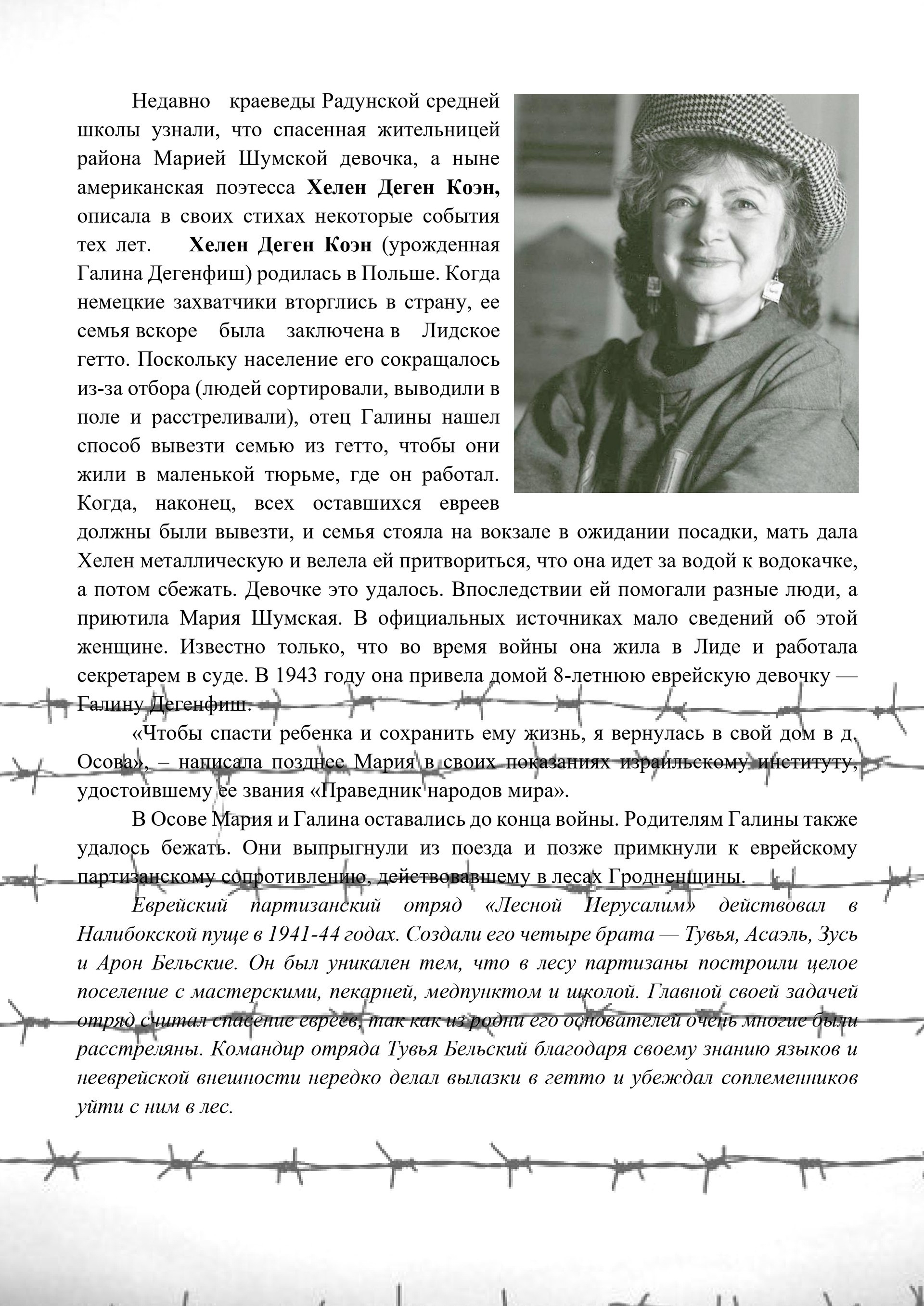 «Они выжили, чтобы рассказать свою историю. Судьбы спасенных евреев — это шрам и напутствие всему человечеству. На этой странице — голоса тех, кто прошел через ад, но нашел в себе силы жить дальше. Их истории — самый важный урок против забвения и равнодушия.»