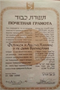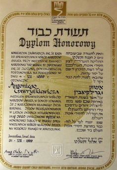 Праведник Народов Мира – почетное звание, присваиваемое в государстве Израиль представителям других народов, которые в период Катастрофы спасали или содействовали спасению евреев